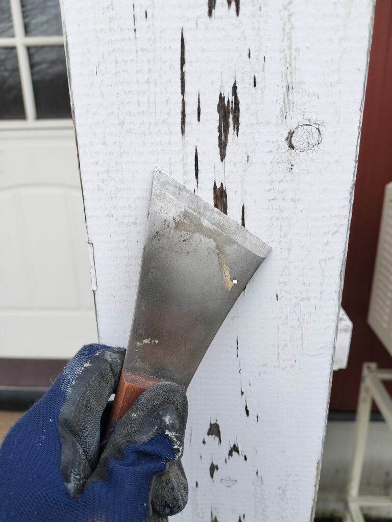 - 作業内容:剥がれている塗装をヘラで削る