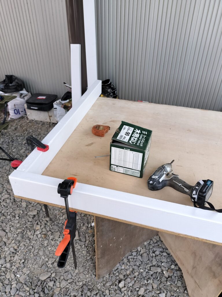 ねじれないようにクランプで仮止めしながら組み立てるのがコツです。