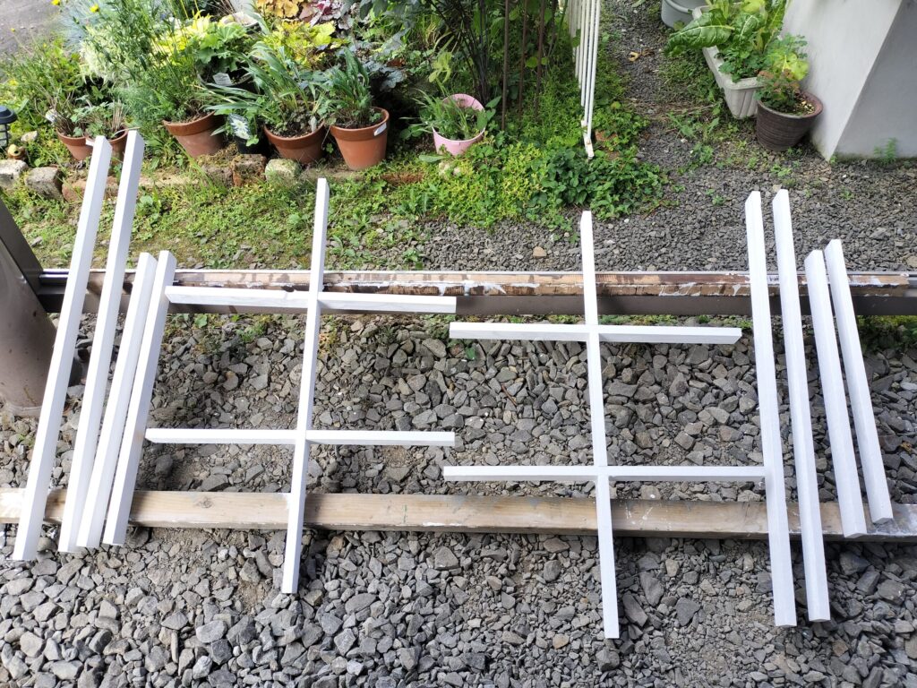 格子の部分は、木材が交差する部分に切れ込みを入れて組み合わさるようにしたのが、小さなこだわりです(笑)