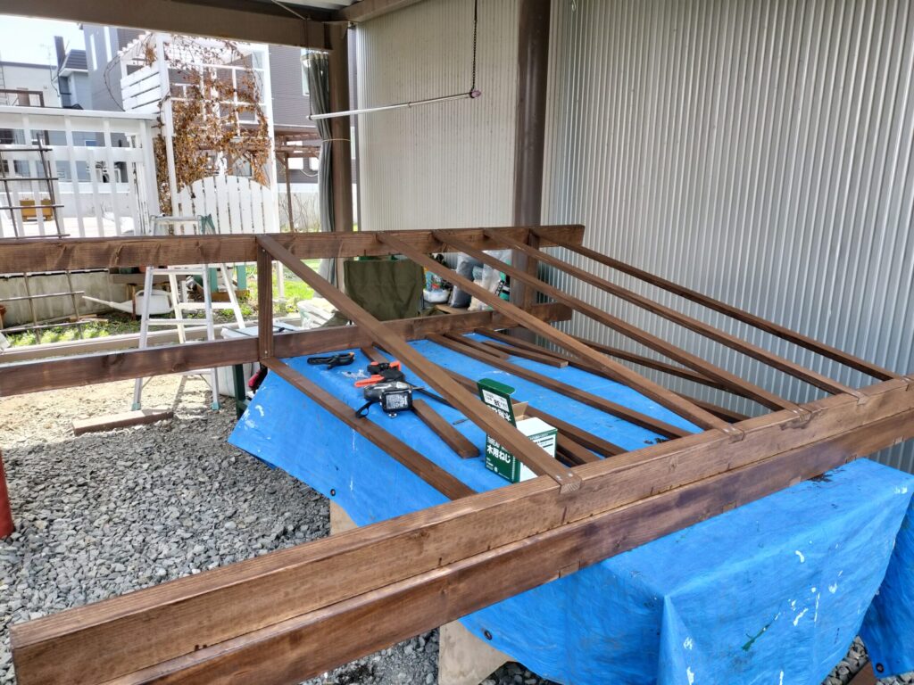 骨組みを組む前に塗装することで塗り漏れを防止し、防腐効果を高めます。