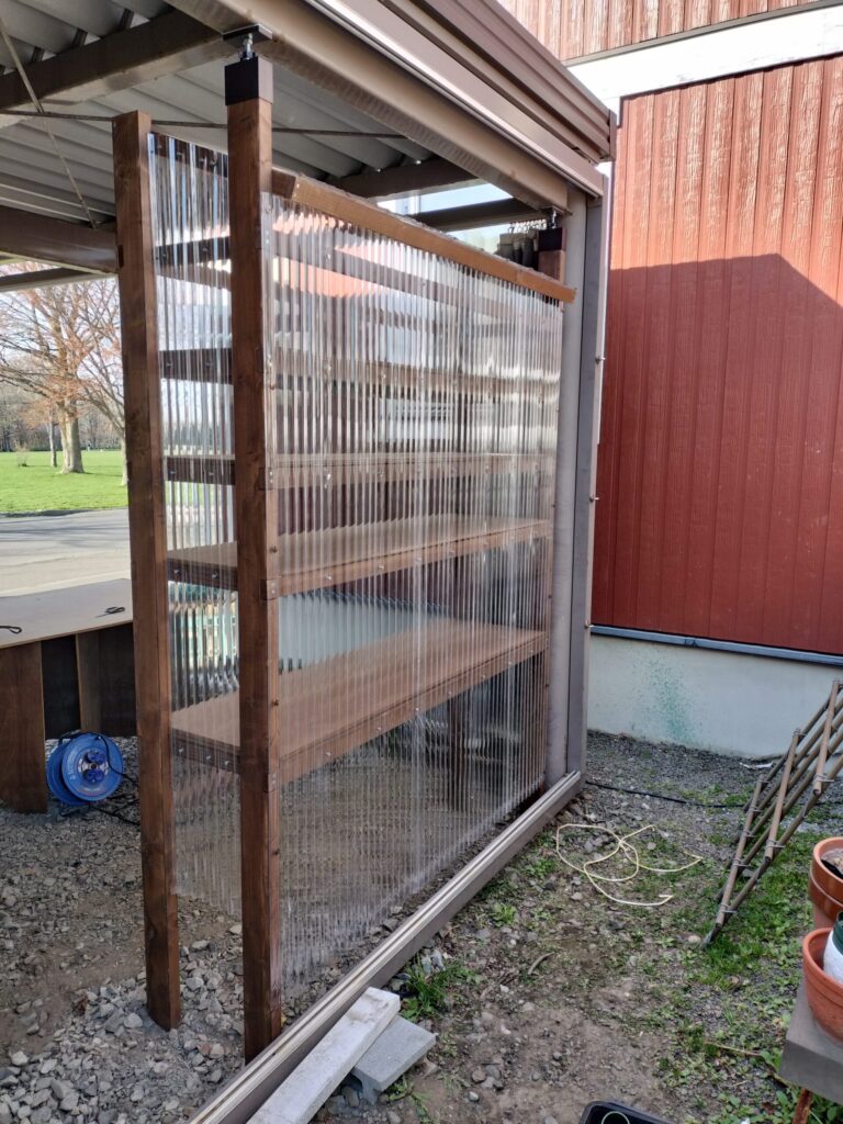 ※プラダンは前面の扉部分に使用しています。波板に比べて加工しやすく、開閉部分に適しています。