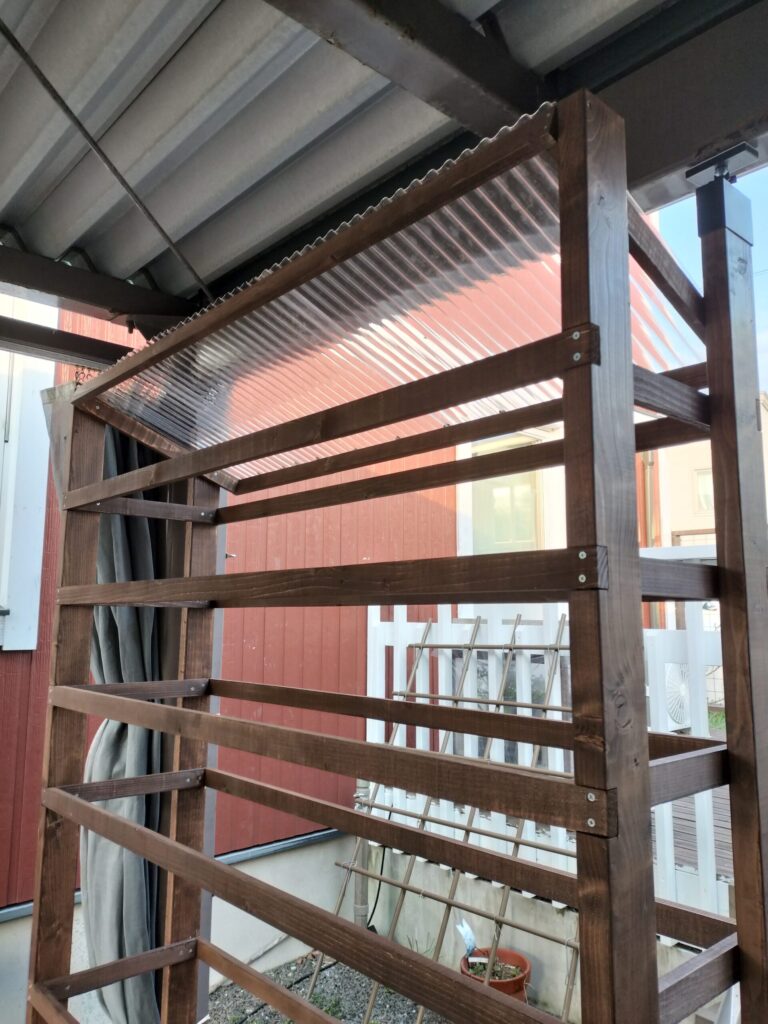 そこで今回は、カーポート下に設置する簡易温室棚をDIYしました。