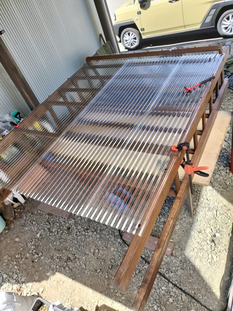 波板はクリアタイプを使用。採光を確保しつつ温室効果を狙います。