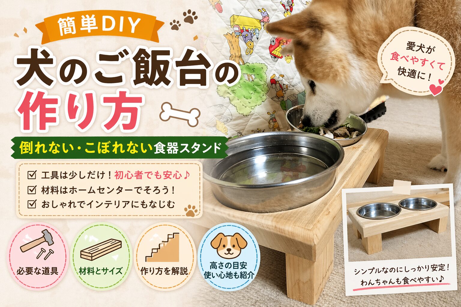 失敗したら悲しくなるのは愛犬も一緒。失敗しないご飯台は嬉しいね♪