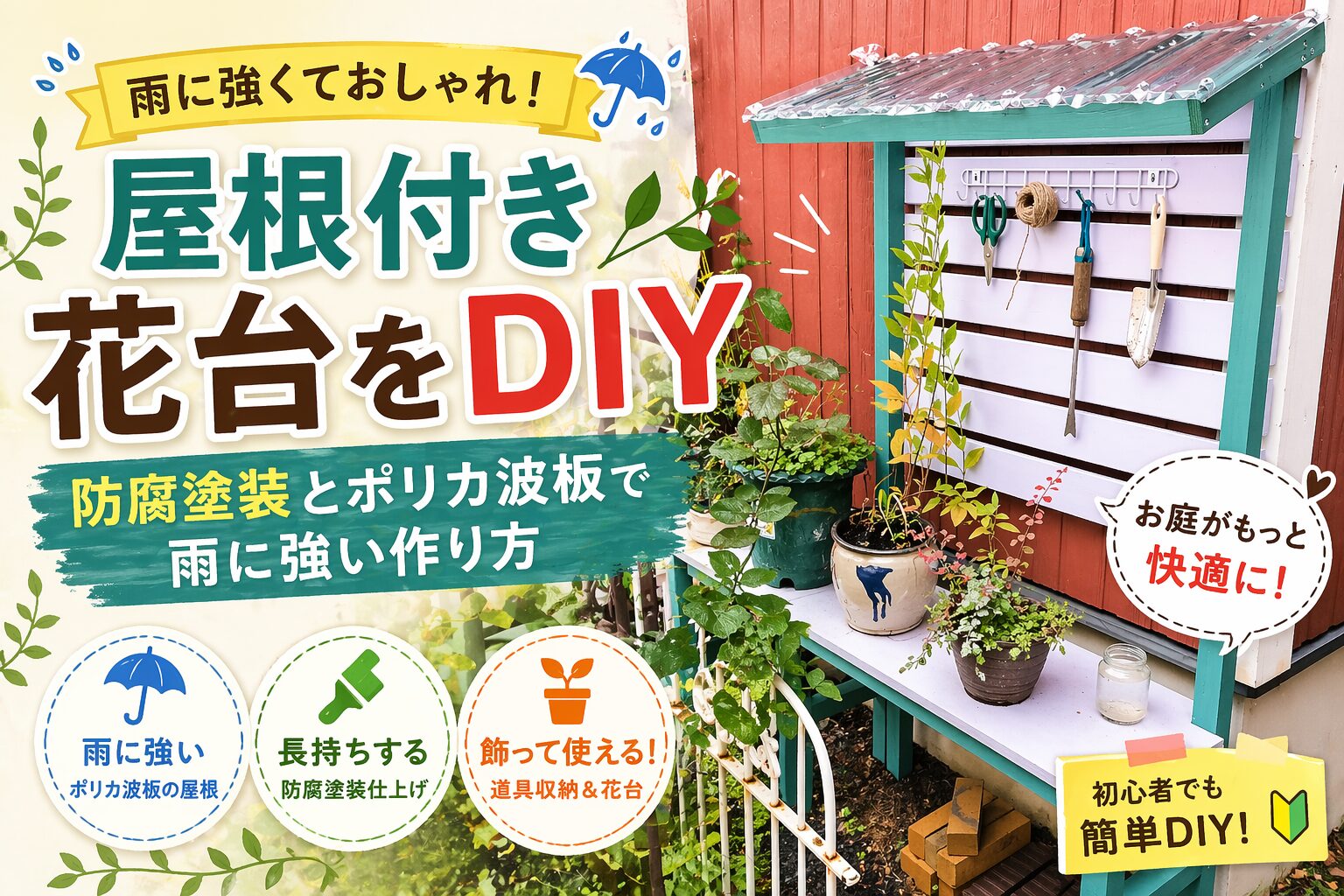 屋根付き花台は、市販だと意外と高価ですが、DIYなら自分の庭に合ったサイズ・カラーで作れます。
